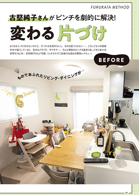 おうちをスッキリさせたいけれど、片づける余裕がないし、ものも捨てられない…。ごちゃごちゃの部屋の中で過ごしていると、気分もイライラ、モヤモヤ…。そんな家族のピンチを数多く救ってきた幸せ住空間セラピスト・古堅純子さんが今回、『レタスクラブ』読者のお悩みを緊急レスキュー!