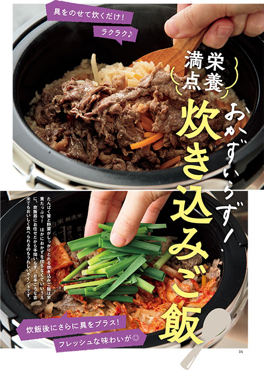 たんぱく質と野菜がしっかりとれる炊き込みご飯は栄養たっぷり! ほかにおかずを作らなくていいうえに、炊飯器にお任せだから手間いらず。お手ごろな古米でもおいしく食べられるのもうれしいポイントです。
