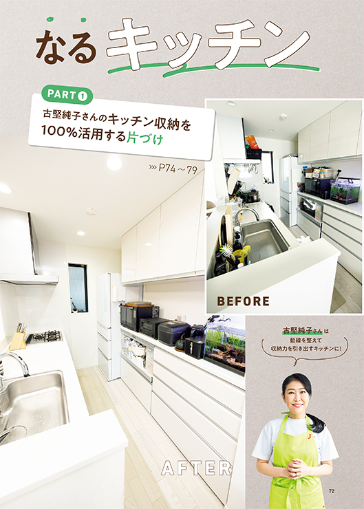 料理特集以外では、古堅純子さんの「キッチン収納を100%活用する収納レシピ」や、牛尾理恵さんやワタナベマキさんの「キッチンリセットルーティン」、自分に合う方法が分かる「4大タイプ別腸活」企画など、今知りたい情報が満載。