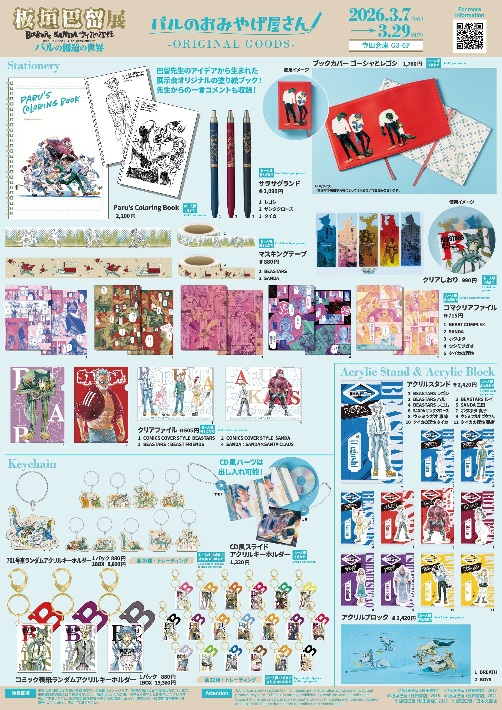 ●展覧会オリジナルグッズ一挙大公開●物販購入特典「線画リーフレット」も初解禁!●「前日内覧会」で板垣巴留先生お手製グッズプレゼントキャンペーンの開催が決定!●展覧会TVCM放映スタート