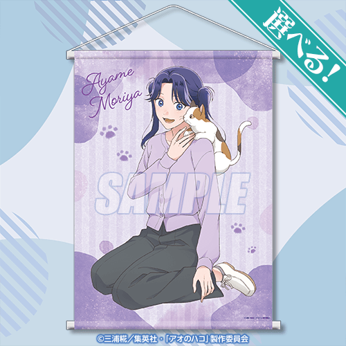 「鹿野千夏」「蝶野雛」「守屋菖蒲」の選べる!特大タペストリーやアクリルスタンドのほか、描き起こしイラストを使用したアクリルキーホルダーやミニ色紙等、オリジナルグッズを多数展開しております。